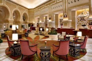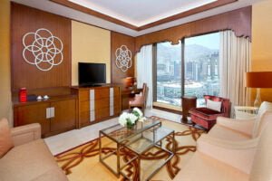Makkah is located in the heart of the holy city of Makkah, which is one of the most luxurious five-star hotels in Jabal Omar complex, only 3 minutes- walk to Al Masjid Al-Haram. The hotel offers 426 luxurious and spacious rooms in a modern style including 52 luxurious suites, an architectural masterpiece lobby and reception area. Hotel features two restaurants: Spice Market and Olive, offering views of the Holy Haram and the city, in addition to Atrium Café, which serves snacks, light meals, pastries and soft drinks. You can discover our private prayer hall overlooking the Haram, and listen to the harm Imam via our linked sound system. The hotel also offers modern business center and medium-size meeting rooms with a large pre-function area.Enjoy your shopping in Jabal Omar commercial center next to the hotel and discover all that is unique and interesting about Makkah, Saudi Arabia, from Jabal Omar Marriott Hotel, Makkah, making your stay an unforgettable experience.